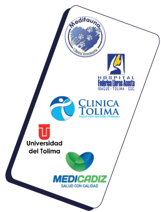 Clínica Tolima, Medicadiz, Hospital Federico Lleras, Universidad del Tolima, Clínica Veterinaria Medifauna, Asotrauma, Urocadiz, Clínica Sharon, Estudios Vasculares del Tolima, Vasculares de Occidente, Cedicaf, Hospital Regional del Libano, UCI Honda, Hospital San Antonio de Pitalito, Cedim IPS, Imagenes Diagnosticas del Mayo, Centro Diagnostico del Sur, Liga Contra el Cancer, Unidad Materno Infantil, Salud Tolima, Gobernación del Quindio.